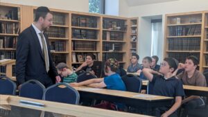 Rabbi Levi Yitzchok Novoseller addresses the students The Power of Speech Each morning after davening, Rabbi Berzansky dedicates a few minutes to address the school