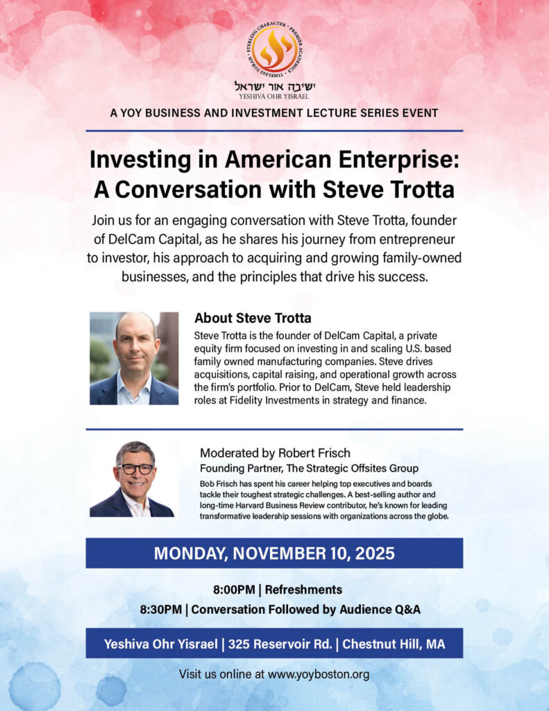 - 11/1 Motzei Shabbos Learning with Rabbi Lebowitz at YOY 8:30PM